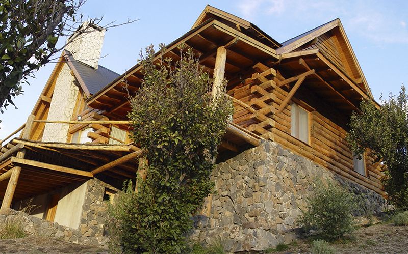 montan los troncos cabañeros mimetizando sus fachadas con el entorno. Aleros y galerías protegen los amplios ventanales de los vientos